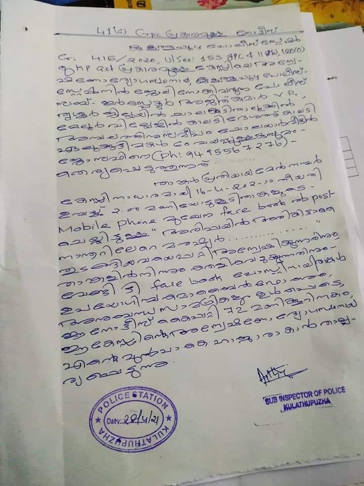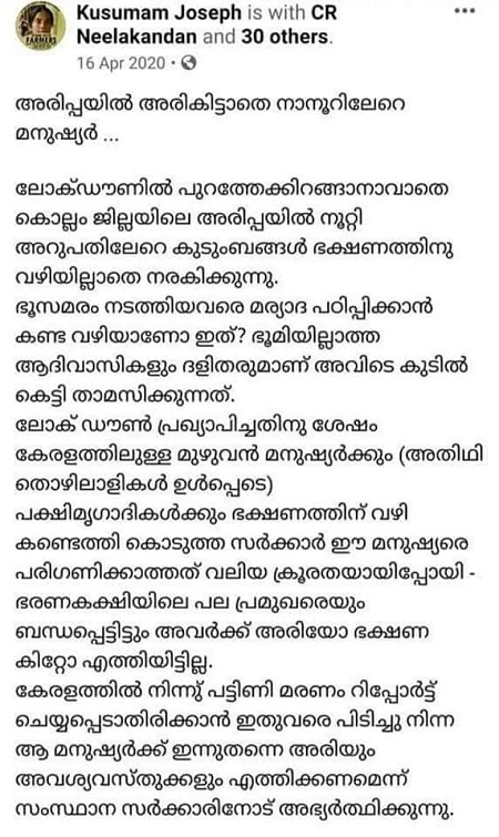 ഉദ്യോഗസ്ഥ രാജിൻ്റെ ശൈലിയെ ഓർമ്മിപ്പിക്കുന്ന പഞ്ചായത്ത് സെക്രട്ടറിയുടെ പരാതി നൽകൽ ജനാധിപത്യ അവകാശത്തിനോടുള്ള നിഷേധമാണ്. പകർച്ചവ്യാധിയുടെ കാലത്ത് ദളിത് വിഭാഗത്തിലെ ഒരു വിഭാഗം ആളുകൾക്ക് ജീവൻ നില നിർത്തുവാനുള്ള ഉത്തരവാദിത്തം പഞ്ചായത്തുകൾക്കാണ്. അവരെ നിയന്ത്രിക്കുവാൻ സർക്കാർ പ്രതിജ്ഞാ ബദ്ധമാണ്. രണ്ടു സംവിധാനങ്ങളും പ്രാദേശികമായ മറ്റു സമിതികളും പാർശ്വവൽക്കരിക്കപ്പെട്ടവരെ പ്രത്യേകം പരിഗണിക്കുവാൻ പരാജയപ്പെടുമ്പോൾ, ആ സംഭവത്തെ ജനങ്ങളുടെ മുന്നിൽ എത്തിക്കുവാൻ പൊതു പ്രവർത്തകർ ബാധ്യസ്ഥമാണ്.