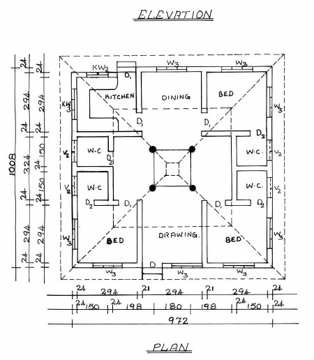 മൂഴിക്കുളം ശാലയിലെ ചൂടിനെ അതിജീവിക്കാൻ കഴിയുന്ന പ്രകൃതി സൗഹൃദ നാലുകെട്ട്. 5 സെന്റിൽ പണിയാവുന്ന ഏറ്റവും വലിയ നാലുകെട്ട്. 1089 ച അടി. വിസ്തീർണ്ണം. കാറ്റും വെളിച്ചവും യഥേഷ്ടം കയറി ഇറങ്ങി പോകുന്ന ഇടം. കോണുകളിൽ കൂടി കടന്നുപോകുന്ന കർണ്ണ സൂത്രങ്ങൾ . ഇഷ്ടിക ജാലികകൾ . ചൂടത്ത് നിന്ന് അകത്തേക്കുകയറുമ്പോൾ തണുപ്പനുഭവപ്പെടും. വീടിനകത്ത് എപ്പോഴും ഫ്രഷ് എയർ ഉണ്ടാകും. പഴകിയ വായുവോ ഇരുട്ടു മൂടിയ മൂലകളോ ഉണ്ടാകില്ല. ചോർച്ചയും ഇല്ല.