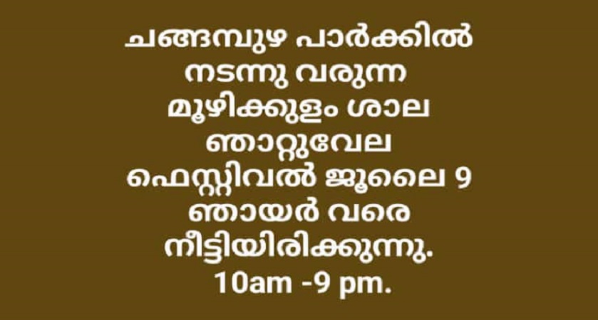 ജൂൺ 30 - ജൂലൈ 6, ചങ്ങമ്പുഴ പാർക്ക് ഇടപ്പള്ളി